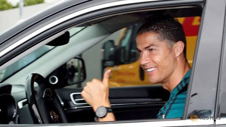 FILE PHOTO: Juventus’ Cristiano Ronaldo gestures as he leaves Juventus Training Center following the outbreak of the coronavirus disease (COVID-19), Turin, Italy, May 19, 2020.