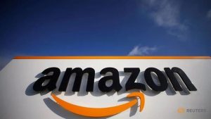 FILE PHOTO: The logo of Amazon is seen at the company logistics centre in Boves, France, November 5, 2019.