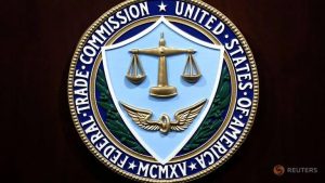 FILE PHOTO: Federal Trade Commission seal is seen at a news conference to announce that Facebook Inc has agreed to a settlement of allegations it mishandled user privacy at FTC Headquarters in Washington, U.S., July 24, 2019.