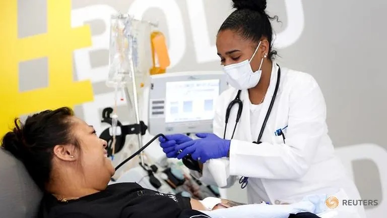 FILE PHOTO: Cruz, an ER technician at Valley Medical Center in Renton, donates convalescent plasma at Bloodworks Northwest for an experimental treatment study during the coronavirus disease (COVID-19) outbreak in Seattle