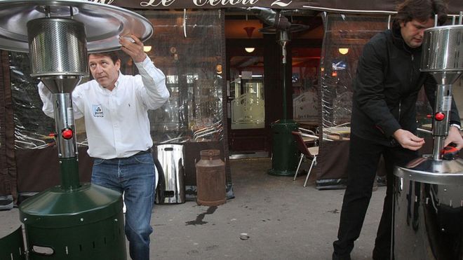 Trade groups say more than 75% of restaurants and cafes in the Paris area have a heated terrace.