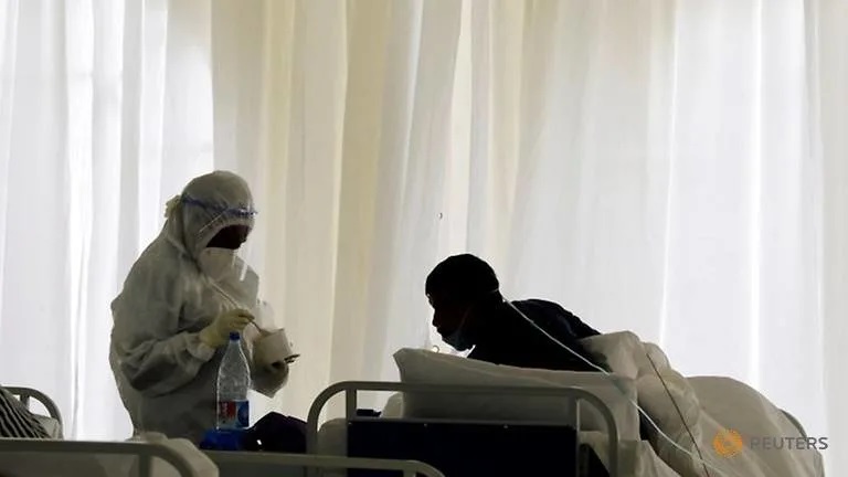 A nurse treats a COVID-19 patient inside a field hospital built on a soccer stadium in Machakos, as the number of confirmed coronavirus disease (COVID-19) cases continues to rise in Kenya, July 23, 2020. Picture taken July 23, 2020.