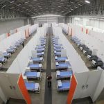 FILE PHOTO: A health worker walks between beds at a temporary field hospital set up by Medecins Sans Frontieres (MSF) during the coronavirus disease (COVID-19) outbreak in Khayelitsha township near Cape Town, South Africa, July 21, 2020.