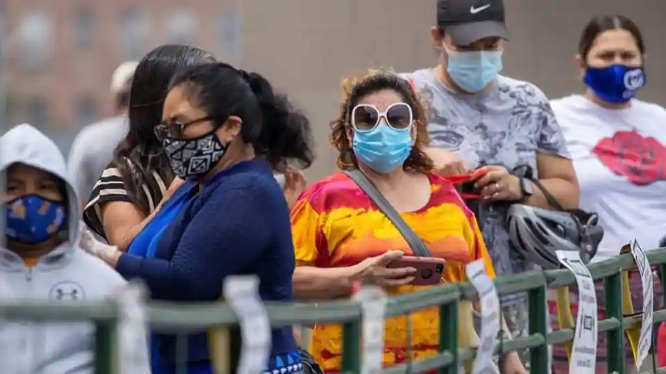 Customers wait in line to shop for food at a Food 4 Less grocery store, during the outbreak of the coronavirus disease (Covid-19), in Los Angeles, California, US on August 5, 2020.